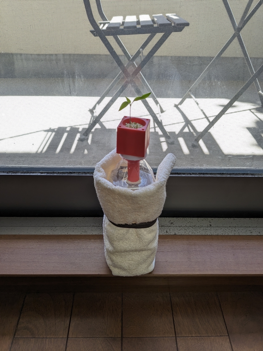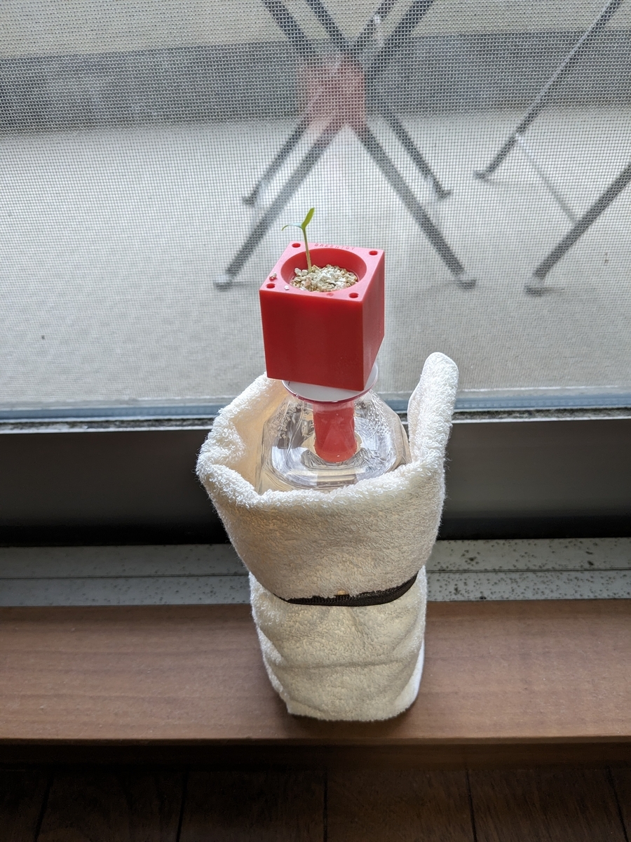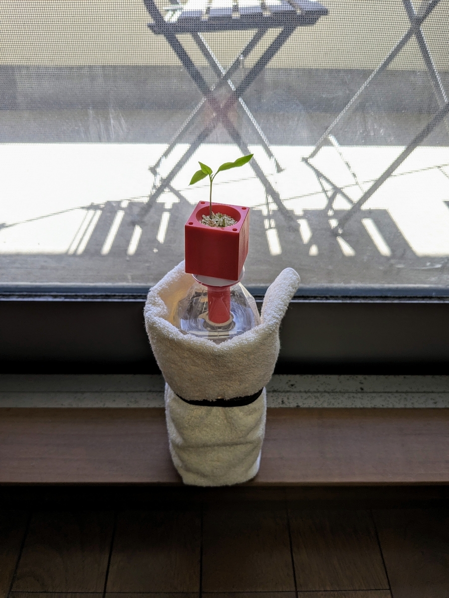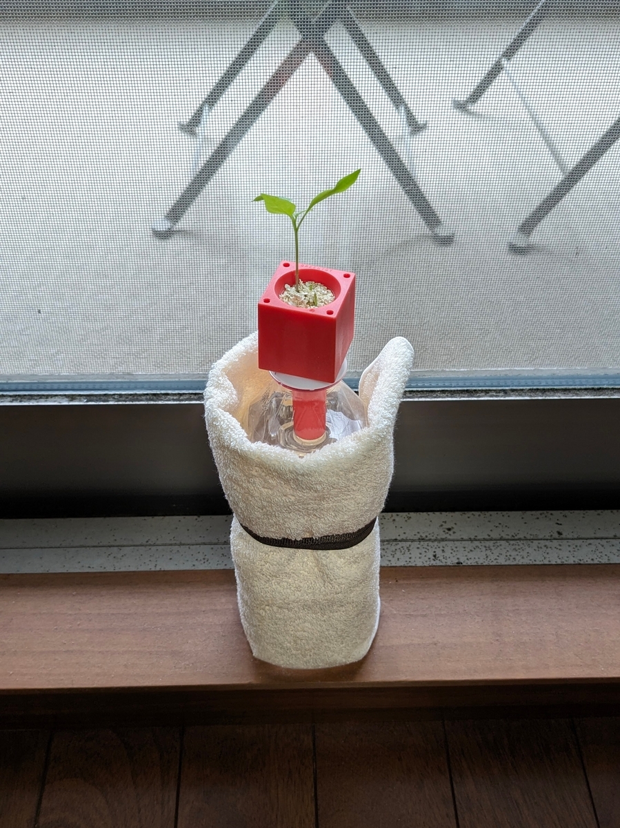 発芽して翌日には葉っぱが生えてきて、さらにその翌日には他の種も発芽しましたが、栄養を集中させるためにやむなくそれらの葉はハサミで切りました。