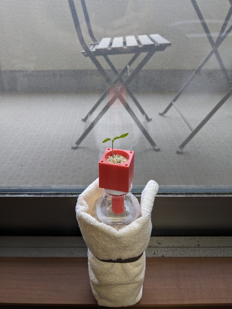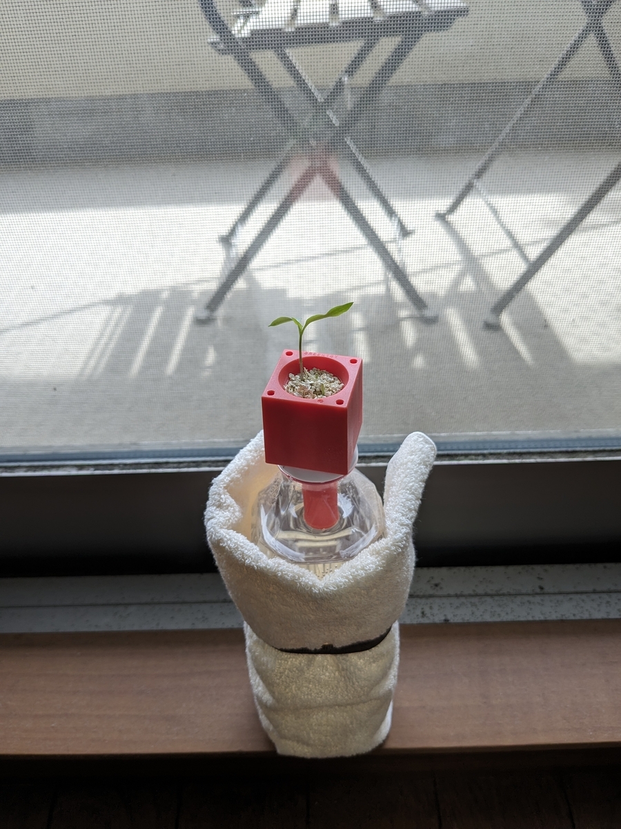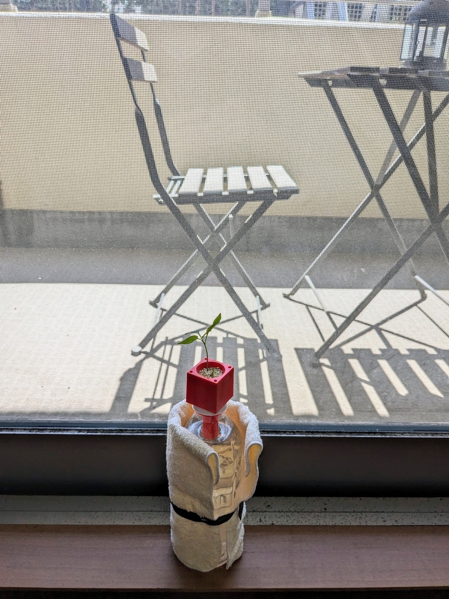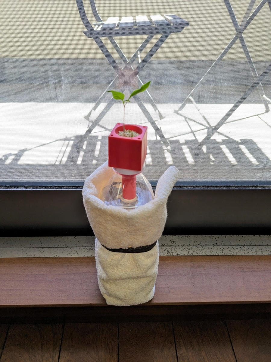 発芽して翌日には葉っぱが生えてきて、さらにその翌日には他の種も発芽しましたが、栄養を集中させるためにやむなくそれらの葉はハサミで切りました。
