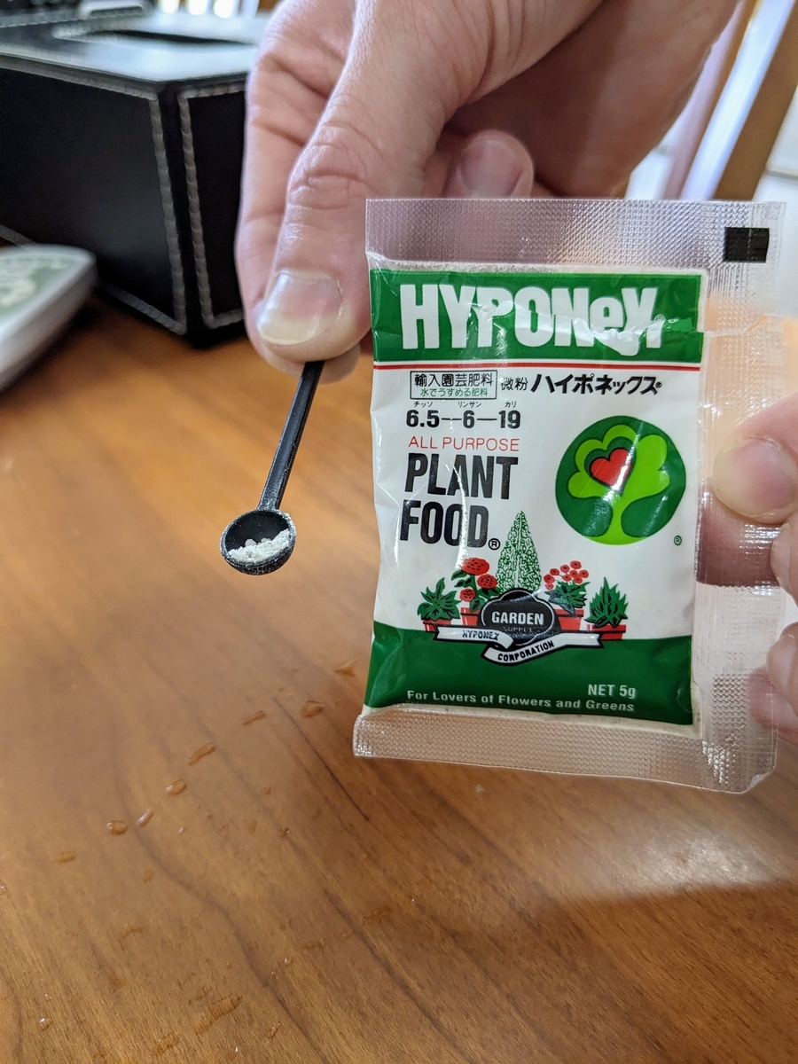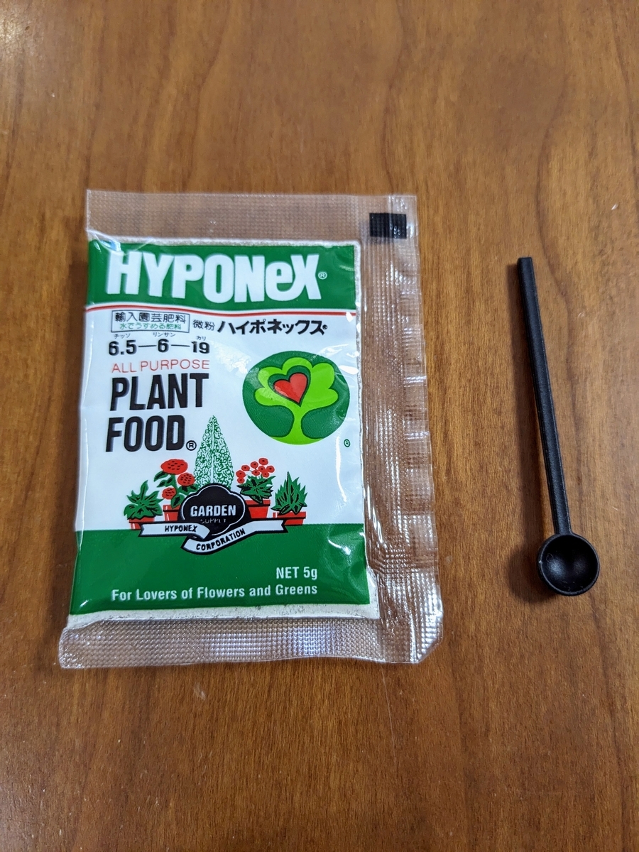 そして、ようやく本葉が2枚とも大きくなったので、肥料を投入しました!